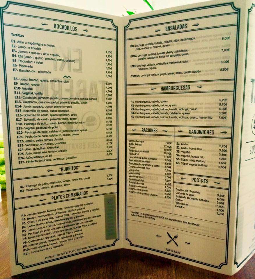 Productos de Álava – Productos locales – Zumos naturales – Bar – Bar cervecería – Bar de pinchos – Cafetería – Cocina casera – Cocina vasca – Comida para llevar – Comida vasca – Pinchos, pintxos – Taberna