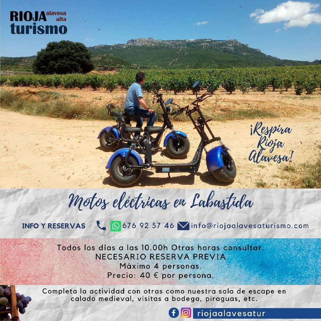 Los atractivos de Rioja Alavesa son muchos y las posibilidades que ofrece, infinitas. Enoturismo, gastronomía y turismo activo: visitas a bodega, catas, maridajes, sala de escape, motos eléctrica, piraguas en el Ebro, senderismo, quads, 4x4, escalada, gymkhanas, visitas a museos,...